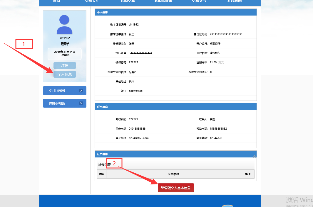 在个人信息中,点击【编辑个人基本信息】进行信息变更