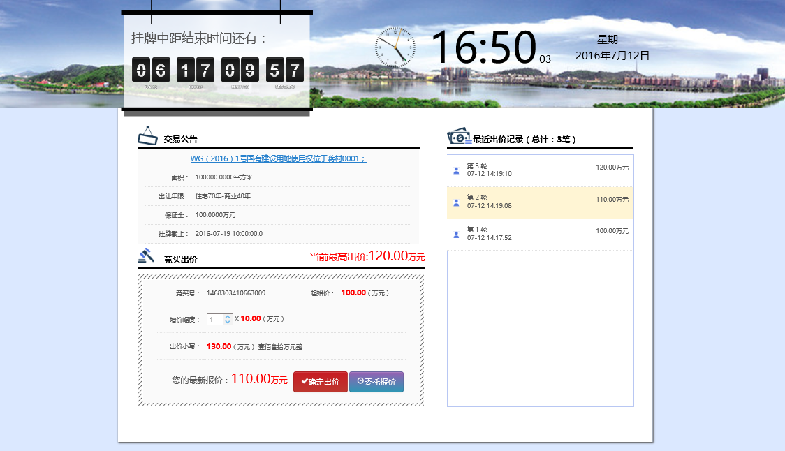 获得【竞买资格确认书】后,可进入竞价大厅进行报价。