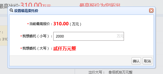 系统支持委托报价,输入自身可接受的最高委托价后,只要在该委托价之下,系统将自动对当前最高