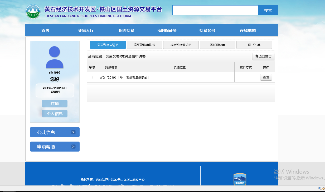 可查看到系统自动颁发的文书,包括竞买资格申请书、竞买资格确认书、成交资格通知书、委托报价