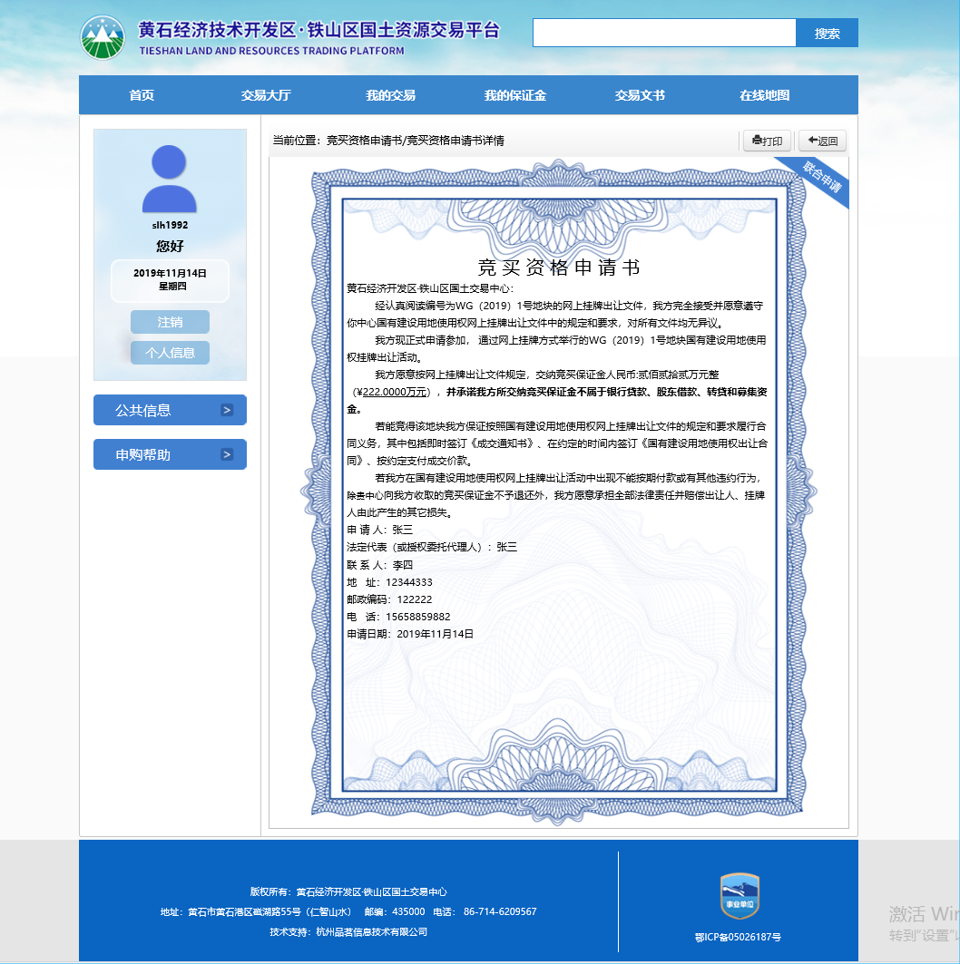 缴纳成功后,系统将自动颁发【竞买资格确认书】。